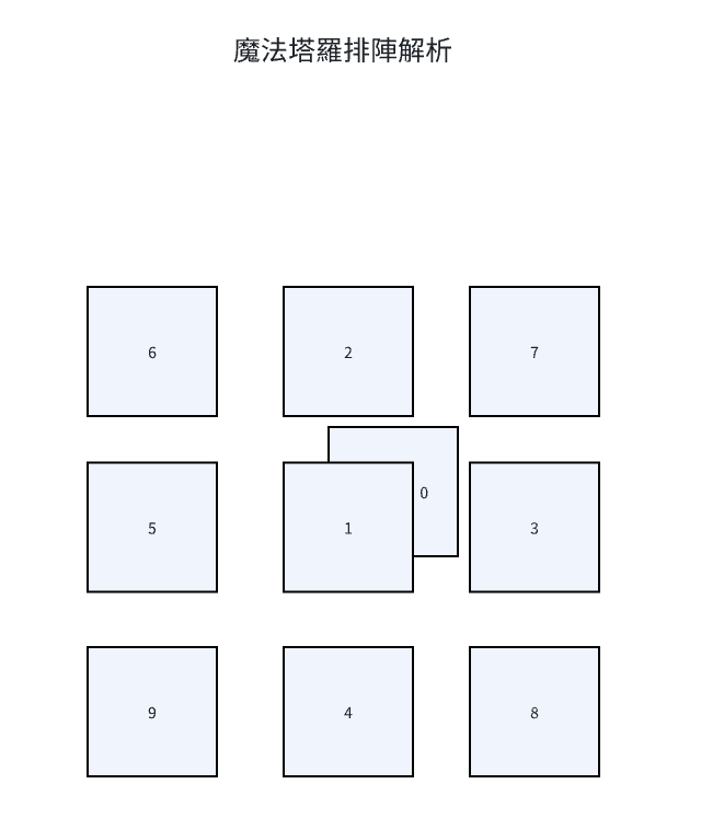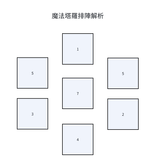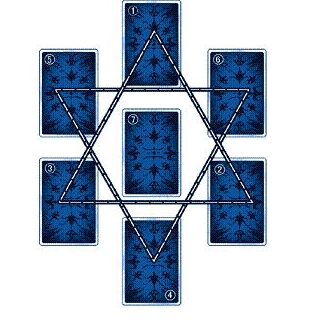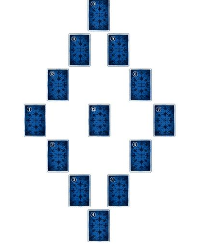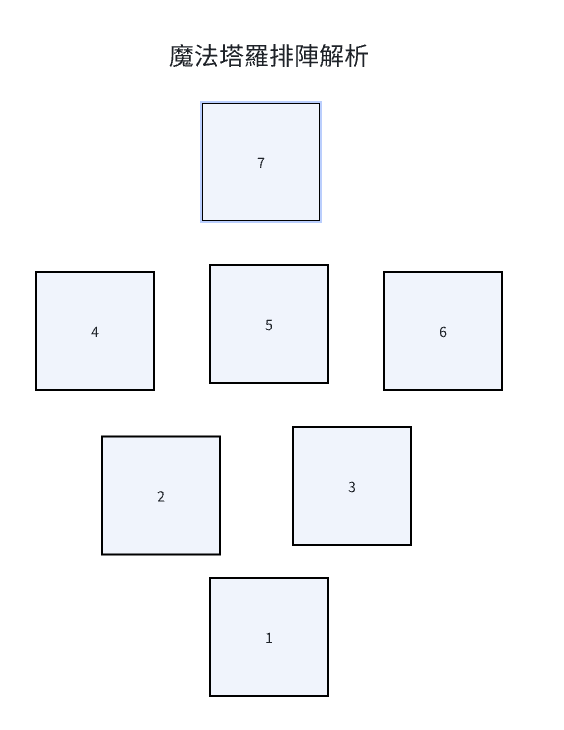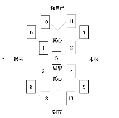 塔羅牌的幸運星占卜法,主要用於占卜事業、愛情。牌陣如(上圖)。