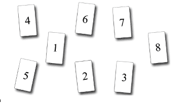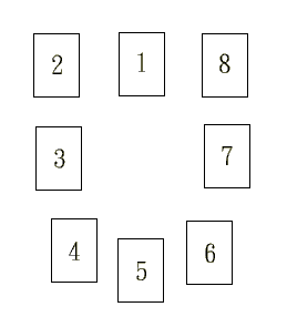 隨意抽八張牌,依序放在1、2、3、4、5、6、7、8。