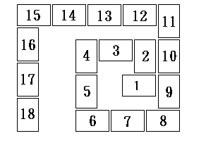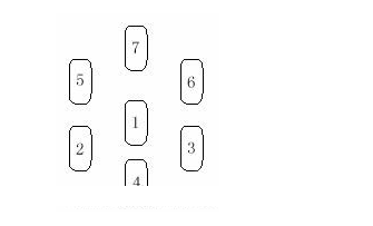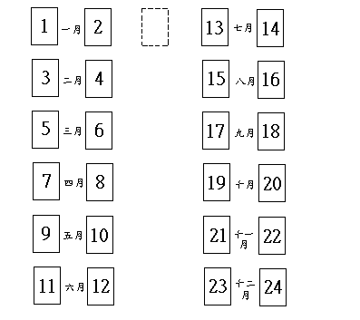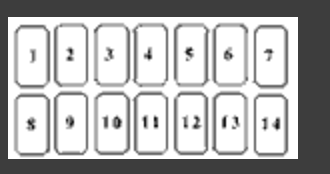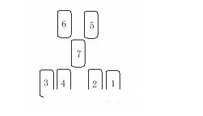 2、切實牌後,將最上面的第一張到第七張取同,依圖示的位置放好。要小心,不要把牌的上下方向弄顛倒!