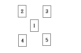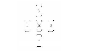 塔羅牌的幸運五指占卜法,主要用於占卜事業、愛情。是一個占卜運程的方法。牌陣如圖。