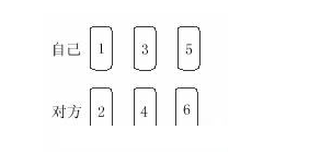 切牌後,從上數,第六張放在1位,之後的第六、七張放在2、3位,之後的第六、七張放在4.5位。