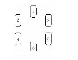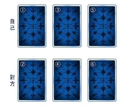 洗牌切牌完成後,隨意抽取六張牌,依次放在1、2、3、4、5、6位置上。