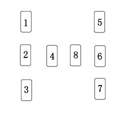 從洗好的塔羅牌中抽出八張牌,依序排列。